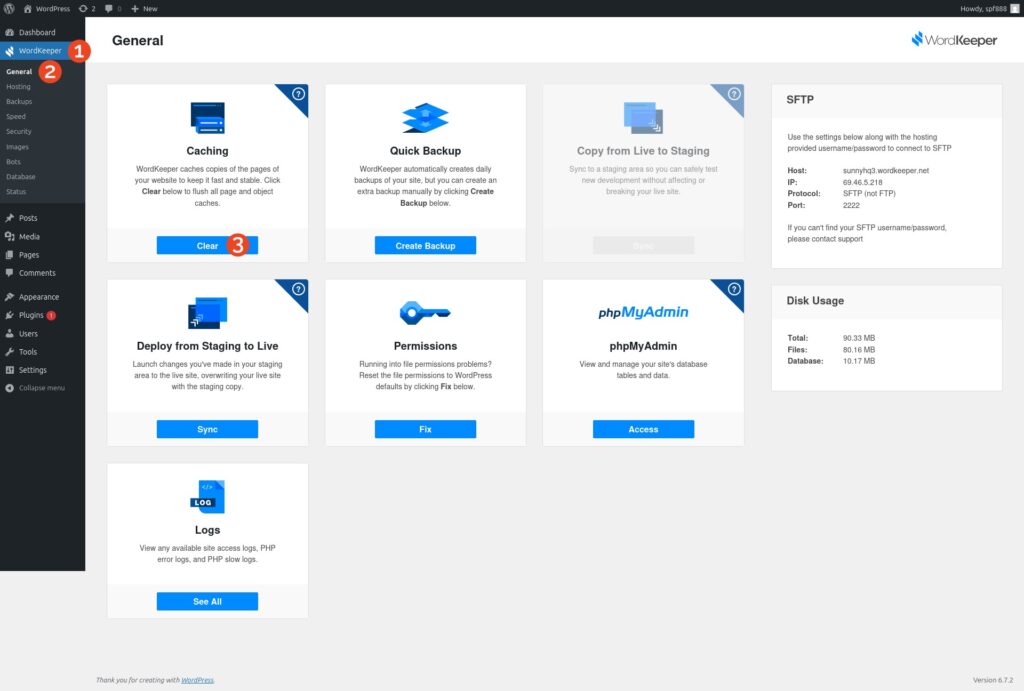 The WordKeeper plugin simplifies cache management by offering a one-click solution to clear the server cache directly from the WordPress dashboard. Compared to navigating through complex hosting settings or relying on third-party caching plugins, the WordKeeper plugin makes clearing your server cache a breeze.